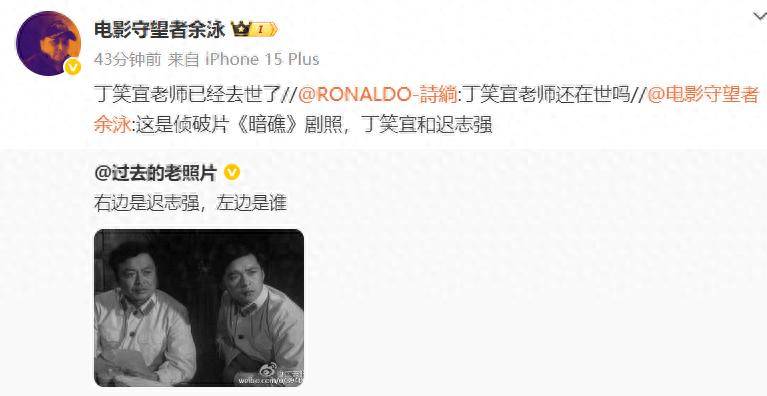 有网友随之询问丁笑宜老师的近况,电影人余泳遗憾告知,丁笑宜老师已经去世了,或许因为丁笑宜本人过于低调,其去世的消息知情者甚少。